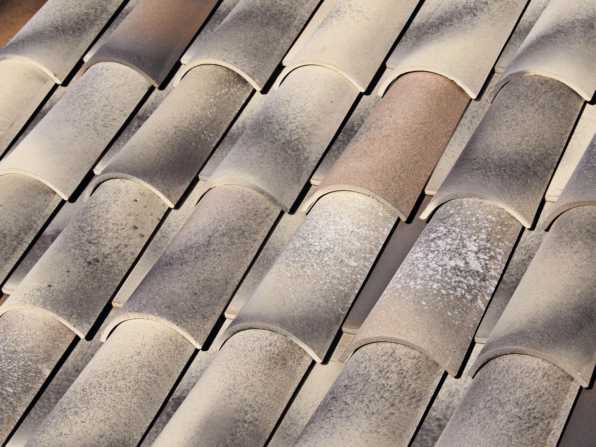 Moss and mildew tend to grow between concrete slate tiles, especially in wet climates, requiring annual professional power cleaning.